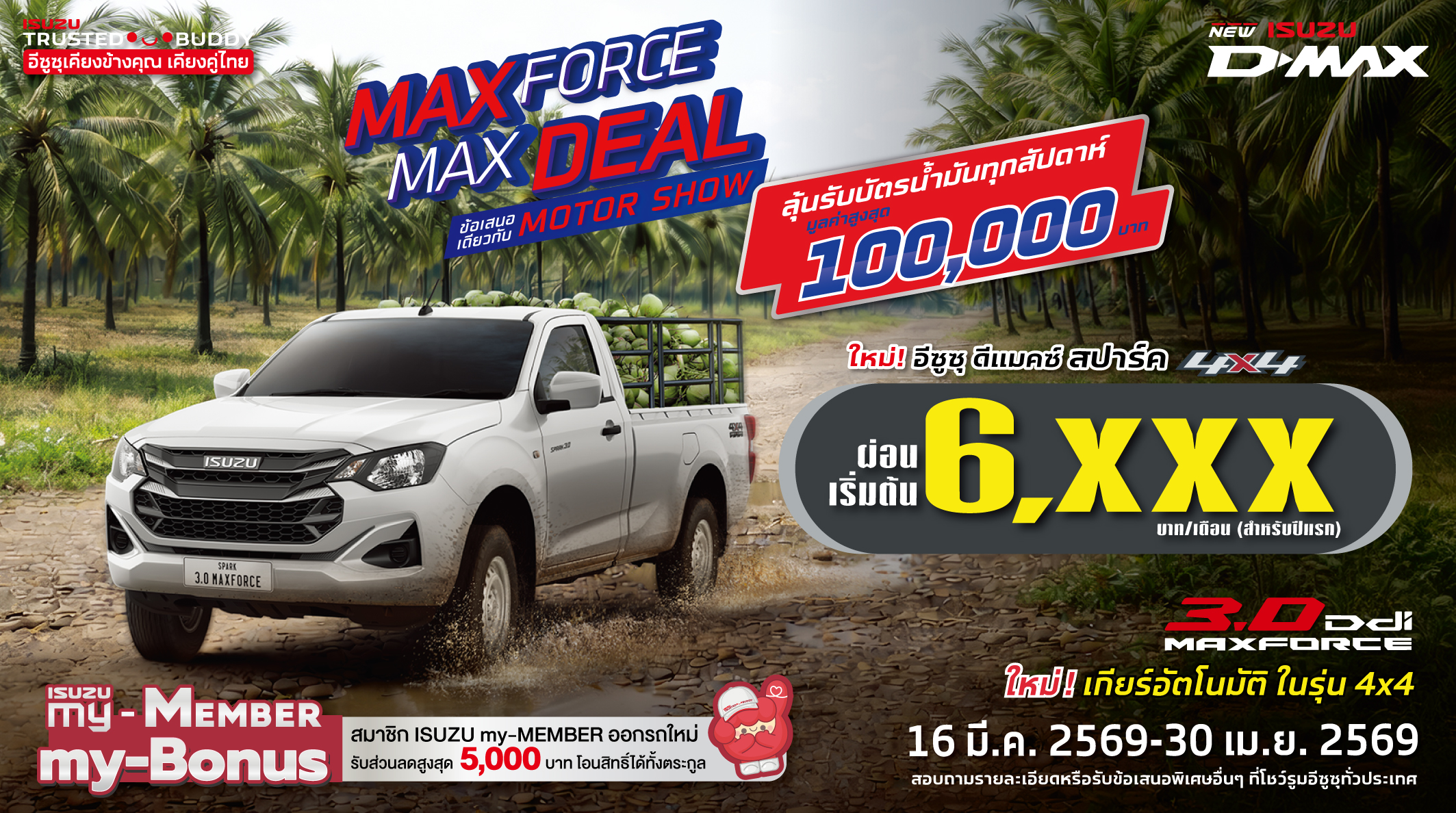 ใหม่! อีซูซุ ดีแมคซ์ สปาร์ค 4x4 ผ่อนเริ่มต้น 6,xxx บาท/เดือน (สำหรับปีแรก)