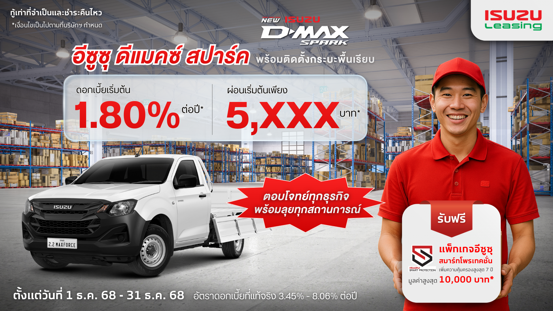โปรปังส่งท้ายปีจากอีซูซุลิสซิ่ง สำหรับอีซูซุดีแมคซ์สปาร์ค พร้อมติดตั้งกระบะพื้นเรียบ