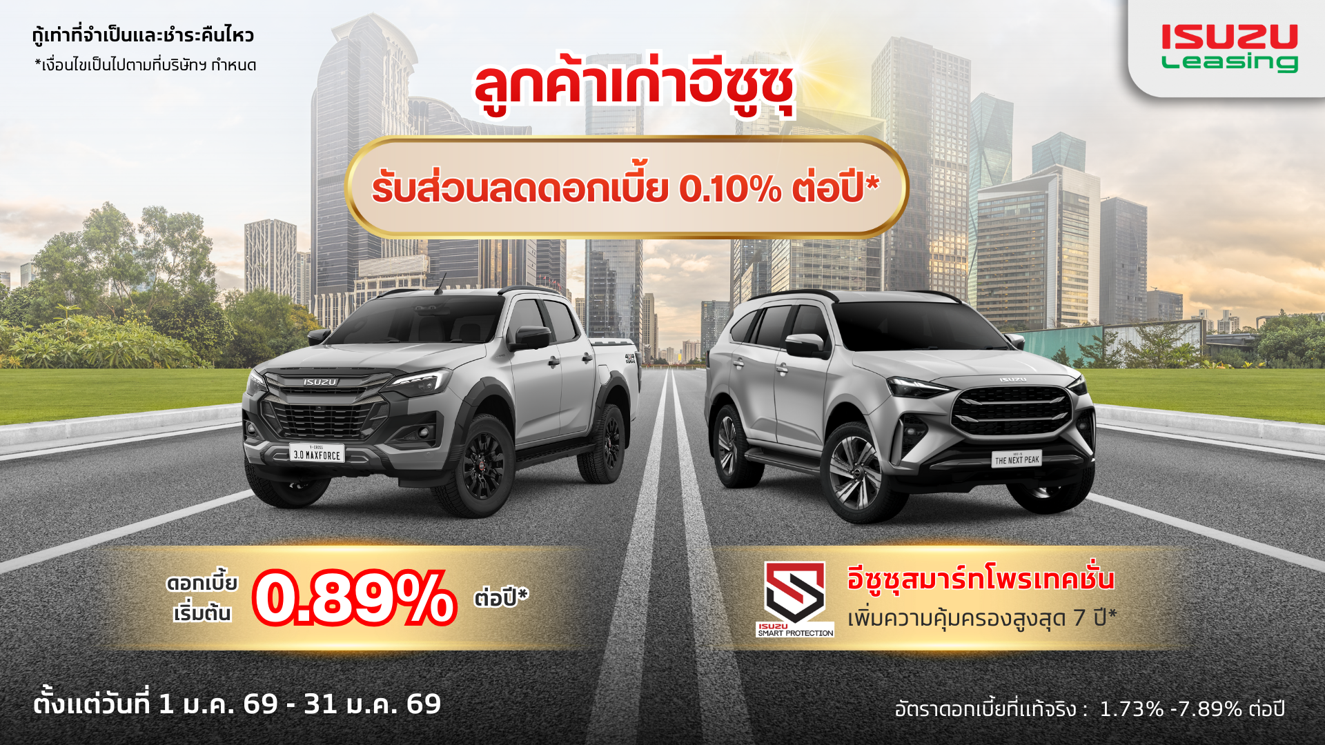 ลูกค้าเก่าอีซูซุ รับส่วนลดดอกเบี้ยพิเศษ 0.10% ต่อปี เมื่อทำสัญญาเช่าซื้อกับอีซูซุลิสซิ่ง