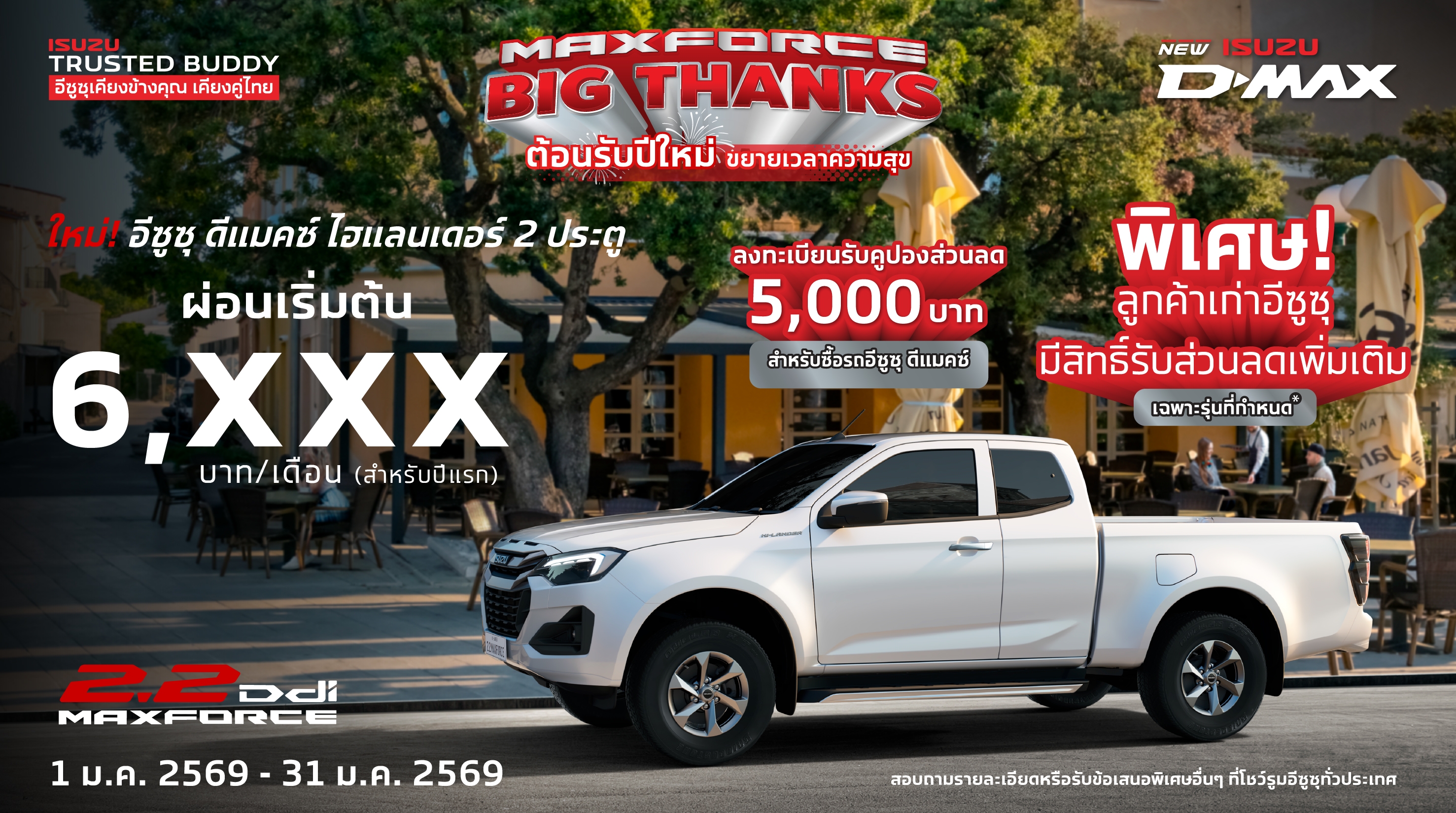 ใหม่! อีซูซุ ดีแมคซ์ แค็บโฟร์ ผ่อนเริ่มต้นเพียง 6,xxx บาท/เดือน (สำหรับปีแรก)