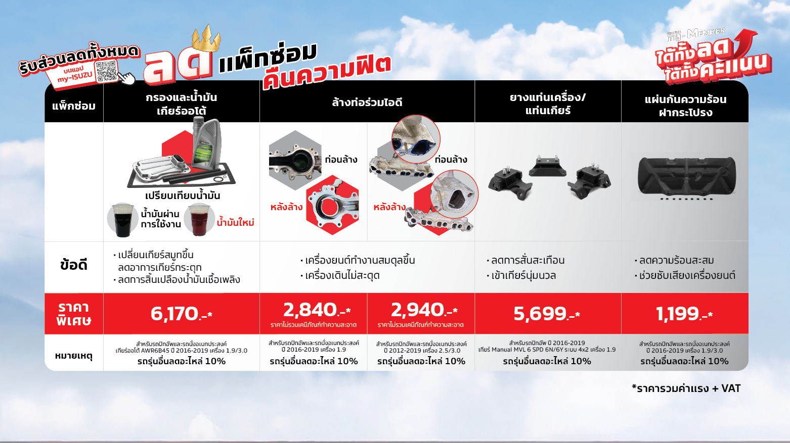 - หากมีการเปลี่ยนแปลงสิทธิประโยชน์ ส่วนลด และรายการสินค้าที่ร่วมรายการจะแจ้งให้ทราบล่วงหน้าทาง https://www.isuzu-tis.com/specialoffer/service-campaign/2025-crmcampaign-1