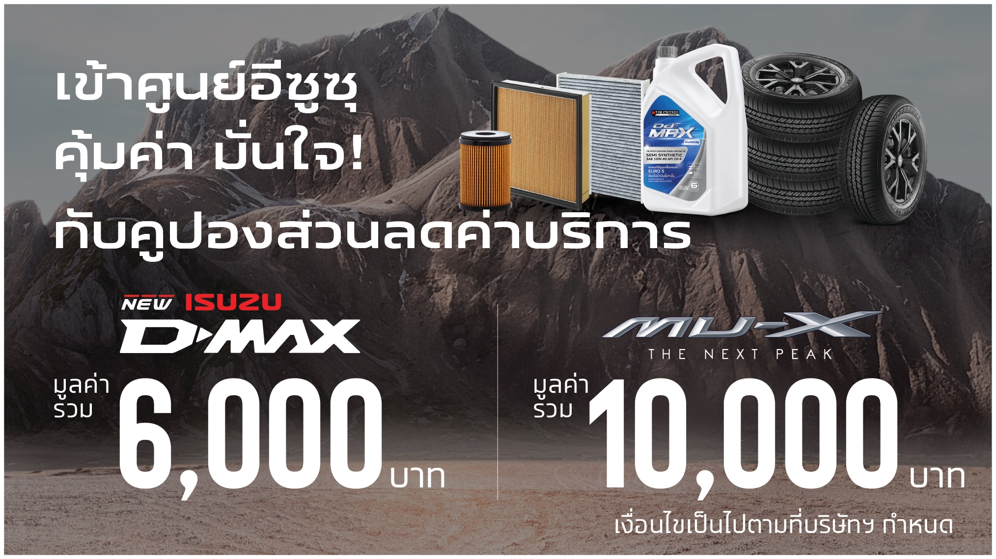 สำหรับรถรุ่น ใหม่! อีซูซุดีแมคซ์ ยูโร 5 ที่จำหน่ายตั้งแต่เดือนตุลาคม พ.ศ. 2568 เป็นต้นไป และรถรุ่น อีซูซุมิว-เอ็กซ์ เดอะ เน็คซ์พีค ที่จำหน่ายตั้งแต่เดือนตุลาคม พ.ศ. 2568 เป็นต้นไป จะได้รับคูปองดังรายละเอียดด้านล่างนี้